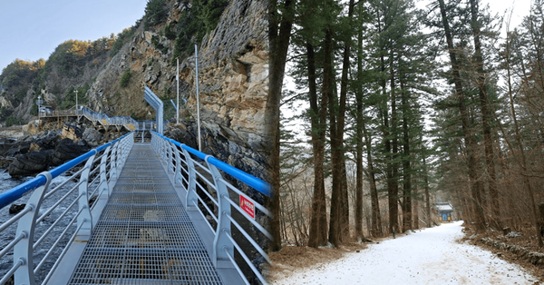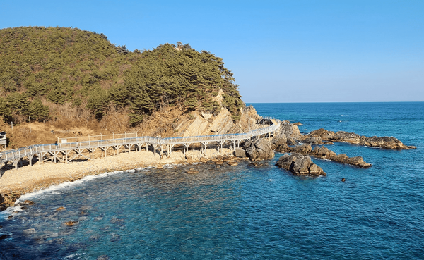 특히 전망대에서 바라보는 동해의 풍경은 장관 그 자체인데요. 겨울 바다의 차가운 파도 소리와 맑은 공기는 걷는 내내 색다른 힐링을 선사합니다. 초반의 데크 계단은 약간의 체력이 필요하지만, 걷는 보람을 느낄 수 있을 만큼 멋진 경관이 펼쳐집니다.
