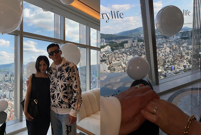 션은 SNS에 “혜영이와 결혼한 지 7592일, 첫눈에 반해버린지 8975일”이라는 메시지와 함께 고층 빌딩의 뷰를 배경으로 아내와 함께 찍은 사진을 공개했다.