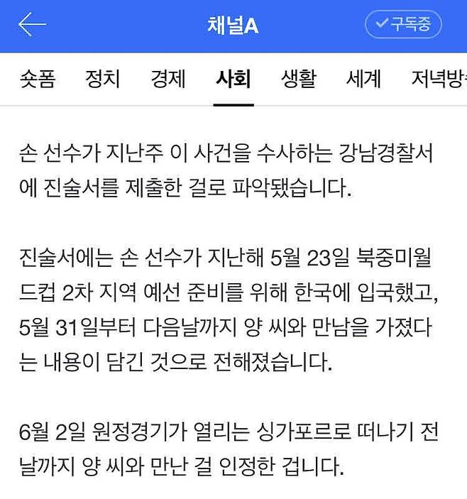 손흥민) 진술서 제출 "월드컵 예선전 때 만났다". jpg