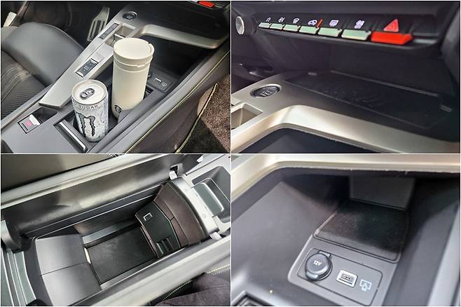 스마트폰 무선충전패드도 설치됐다. 스마트폰 충전패드 아래에는 동굴형으로 수납공간이 마련됐고, 컵홀더는 2구가 설치됐다. 전반적으로 깔끔한 분위기가 인상적이다.
