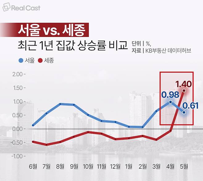 6월 3일 조기 대선이 예정되고 3월 말, 4월부터 각 후보들의 부동산 공약에 관심이 쏠리기 시작했습니다. 특히 세종시가 행정수도 이전 공약으로 투자자 수요가 늘면서 5월 한 달 사이 1% 넘는 집값 상승률을 보였습니다.