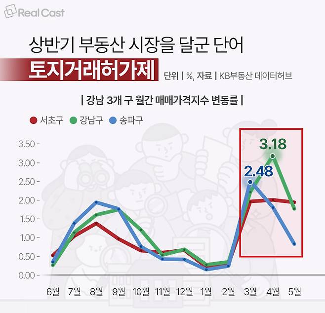 올 상반기 부동산 시장의 최대 이슈라면, '토지거래허가제'를 꼽을 수 있겠습니다. 지난 2월 12일, 서울시가 소위 '잠삼대청'(잠실, 삼성, 대치, 청담동) 일대에 묶인 토지거래허가제를 해제하면서 집값이 들썩였습니다. 이에 3월 24일 다시 강남 3구는 물론, 용산구 아파트 전역까지 토허구역으로 재지정했는데요.