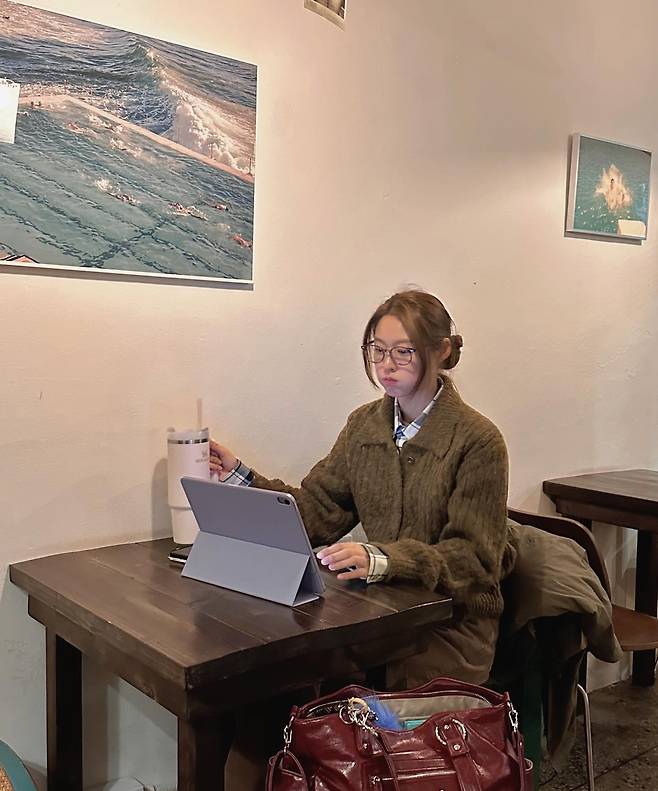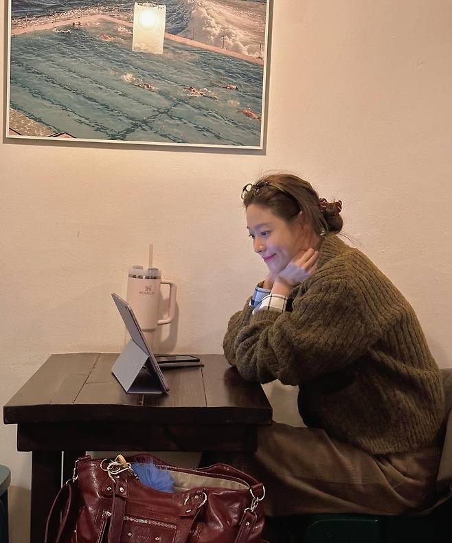 설현이 카페에서 태블릿에 열중하고 있는 귀여운 일상을 공개하며 친근한 매력을 뽐냈어요.