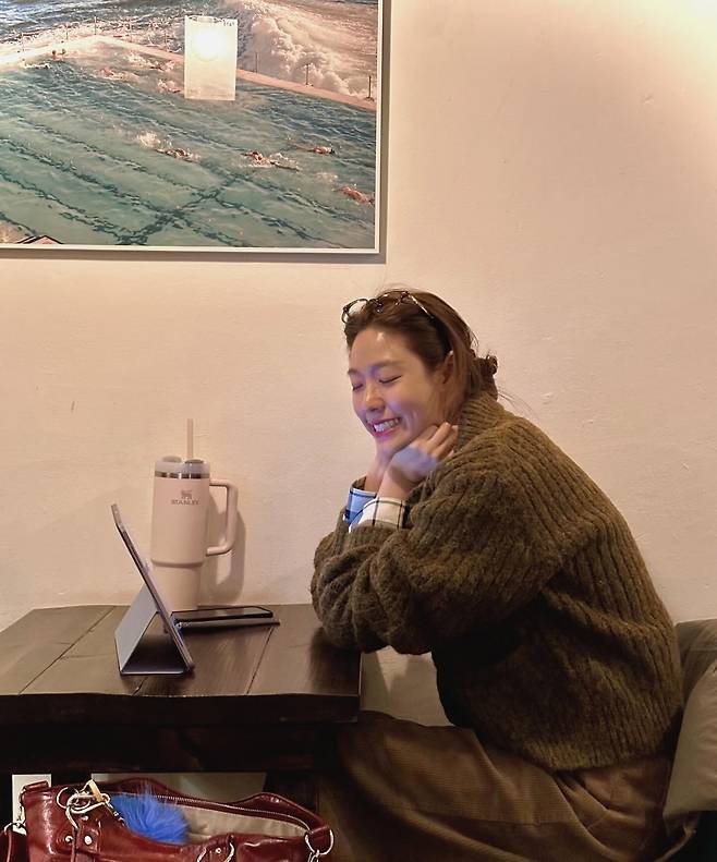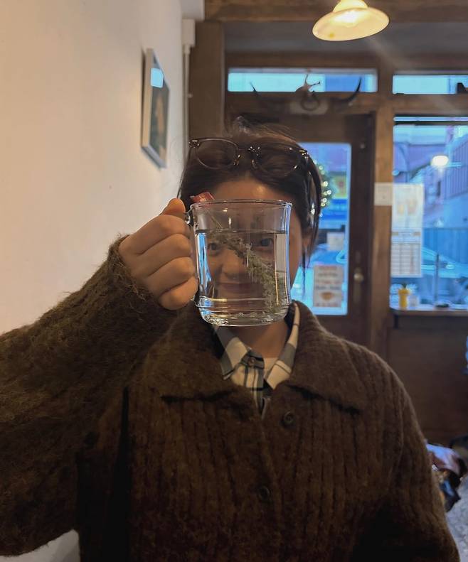 꾸밈없는 모습임에도 불구하고 그녀만의 맑고 청순한 분위기가 따뜻한 카페 조명과 어우러져 한 편의 일상 화보 같은 느낌을 자아내고 있어 눈길을 끌어요.
