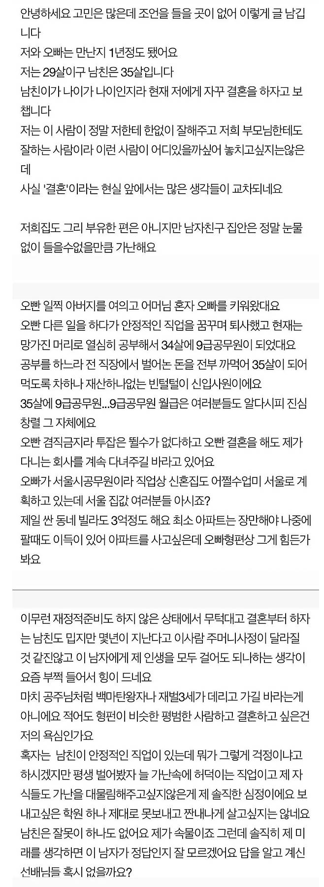 9급 공무원 35실 남자친구와 결혼을 고민하는 여자