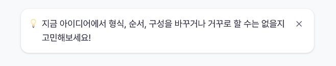 - 보드 상단에 브레인스토밍 가이드를 보여주어, 아이디어를 다양한 관점으로 생각해볼 수 있는 점이 좋았어요.