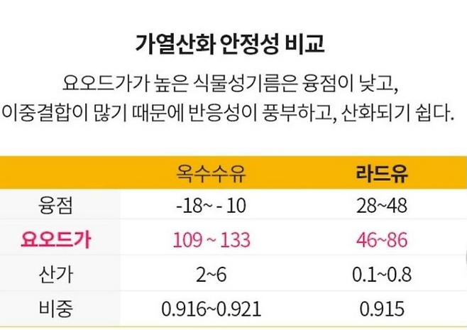 ๋ผ์ง๊ธฐ๋ฆ์ ๋ฐ์ฐ์ ์ด ์ฝ 190~210ยฐC๋ก, ์ผ๋ฐ์ ์ธ ์๋ฌผ์ฑ ๊ธฐ๋ฆ(์: ์ฌ๋ฆฌ๋ธ์ค์ผ)๋ณด๋ค ๋์ ํธ์