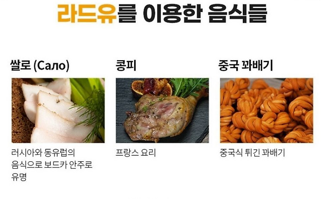 โ๋ผ๋(Lard)โ๋ ๋ผ์ง์ ์ง๋ฐฉ์ ์ ์ ํ ๋๋ฌผ์ฑ ๊ธฐ๋ฆ์ผ๋ก, ์ฃผ๋ก ๋ผ์ง์ ๋ฑ์ง๋ฐฉ(back fat)์ด๋ ๋ณต๋ถ ์ง๋ฐฉ์์ ์ถ์ถํฉ๋๋ค.