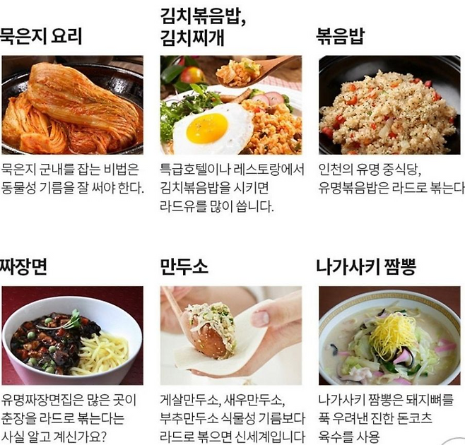 ์ ํต๊ตฐ๋ง๋, ๊น์น๋ณถ์๋ฐฅ, ๊ตญ๋ฐฅ, ์ ์ก๋ณถ์ ๋ฑ ํ๊ตญ ์๋ฆฌ์์๋ ํ๋ฏธ๋ฅผ ์ฌ๋ฆฌ๋ ์ฌ๋ฃ๋ก ํ์ฉ๋ฉ๋๋ค.