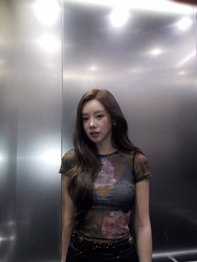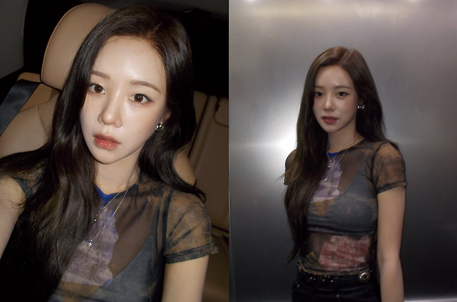 사진 속 김민설이 선보인 패션은 2000년대 유행을 재해석한 '그런지 무드 시스루' 룩이었습니다.