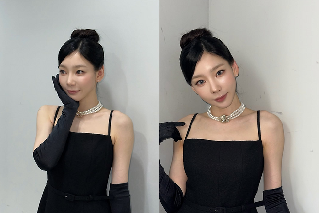 이번 스타일의 핵심은 '헵번 룩'의 현대적인 재해석이다. 태연은 '티파니에서 아침을'의 상징인 블랙 드레스와 진주 초커, 그리고 우아한 업스타일 헤어를 자신만의 색깔로 소화했다.