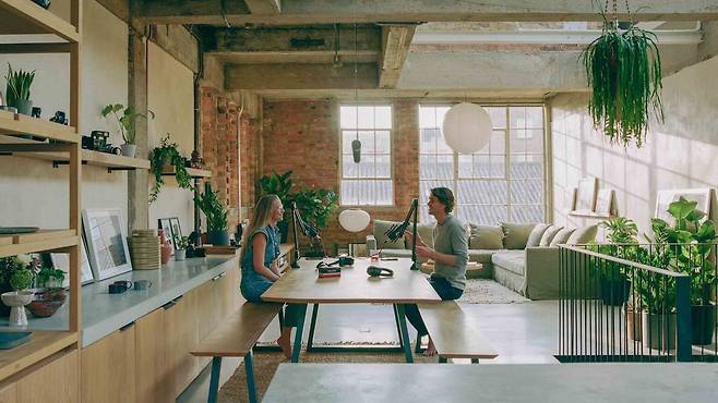 리빙 공간에는 큰 테이블을 배치해 환경운동가로서 운영하는 팟캐스트 방송 녹음을 하는 스튜디오다. 부부의 휴식 공간이자, 게스트들이 편히 쉴 수 있게 창가 쪽으로 긴 소파를 배치해 편안하면서도 분위기 좋은 스튜디오를 만들었다.