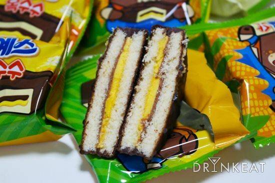 민트초코, 고구마, 수박, 딸기&바나나··· 오예스 시리즈에 뉴페이스가 등장했다. 빵 사이에 초코 크림과 콘 크림을 더한 오예스 옥수수맛이 그 주인공이다. 빵 겉 부분이 초콜릿으로 코팅되어 있는 데다, 콘 크림의 단맛도 상당히 진한 편이라 하나만 먹어도 급속 당 충전이 가능하다. 콘 크림은 삼립 옥수수 크림빵에 들어 있는 크림, 혹은 옥수수 아이스크림과 비슷한 맛이다. 초콜릿 코팅이 살짝 단단해질 만큼만 냉동실에 두었다가 먹는 걸 추천. 한 박스에 12개가 들어있다. 가격은 3000~4000원대.