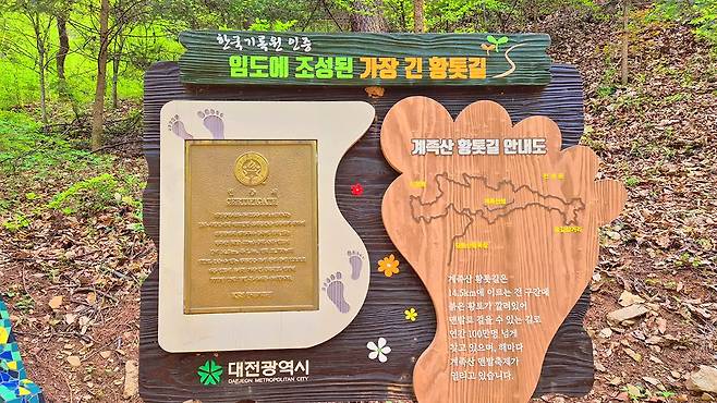 대전광역시 대덕구 장동에 위치한 계족산 황톳길은 국내 최장 14.5km 맨발 트레킹 코스로, 2006년 지역 기업이 시민 건강을 위해 2만여 톤의 황토를 공수해 조성했다. 자연적으로 생긴 길이 아니라, 처음부터 ‘맨발 걷기’를 위한 목적으로 설계된 길이라는 점에서 그 특별함이 시작된다.