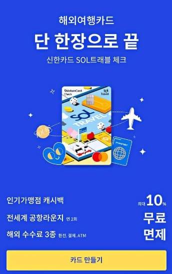 신한은행 SOL 뱅크에서 'SOL트래블 체크카드'와 전용 외화통장을 만들면 30종의 통화에 100% 우대 환율이 제공됩니다.