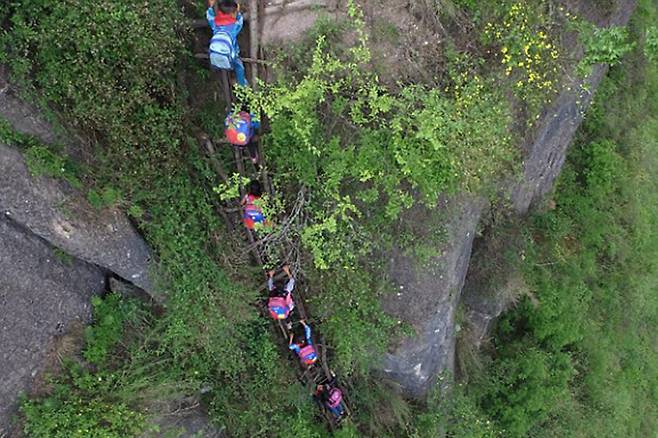 마을과 외부를 연결하는 유일한 길은 절벽에 걸려 있는 계단이 전부여서 아이들은 등교하기 위해 2시간 동안 가파른 절벽을 타야 하는데요.