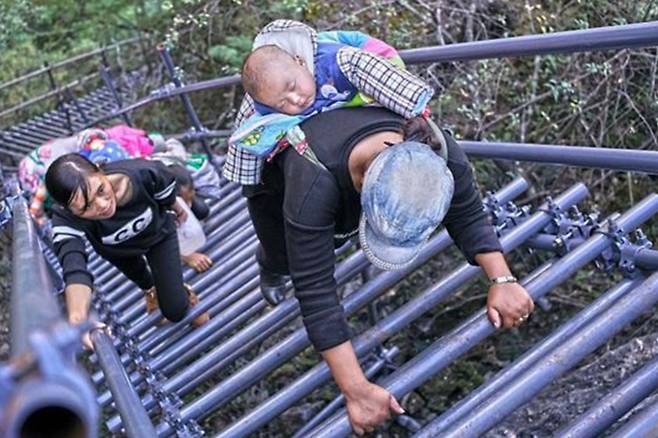 절벽 타기에 익숙해진 주민들도 하산에만 한 시간 넘게 소요되며 등산에는 1시간 30분가량 걸린다고 전해졌습니다.