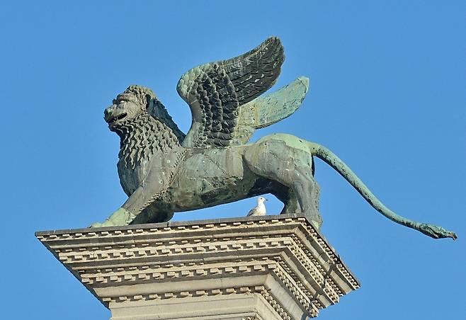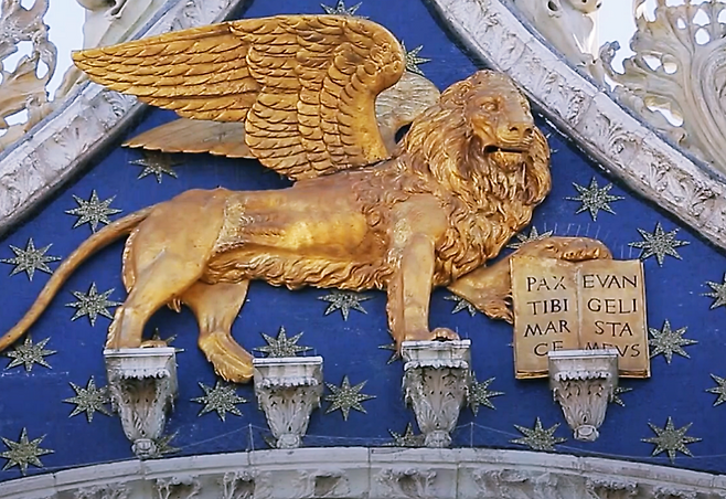 산 마르코 광장에는 기둥 위에 세워진 날개를 가진 사자상이 자리한다. 베네치아의 사자로도 불리는 이 청동상은 그리스도의 제자이자 복음서 저자로 유명한 성 마르코(개신교의 마가)를 상징한다.