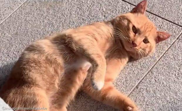 집사가 먹태를 처음 만난 건 2021년 10월 아파트 현관 앞이었다. 당시 집사 부부는 신혼집으로 새 아파트에 입주했는데 처음 보는 고양이가 나타나 벌러덩 눕자 마냥 신기했다고.
