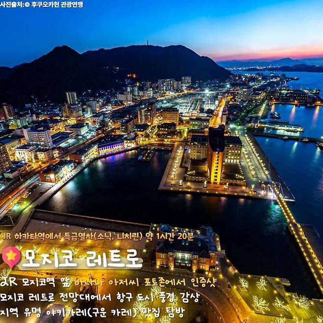 모지코 레트로는 JR 하카타역에서 특급열차(소닉, 니치린)를 타고 1시간 30분 정도 달리면 도착하는 후쿠오카 근교 여행지다. 기타큐슈에 있으며 과거 국제 무역항으로 번성했던 항구 도시의 풍경을 가졌다.