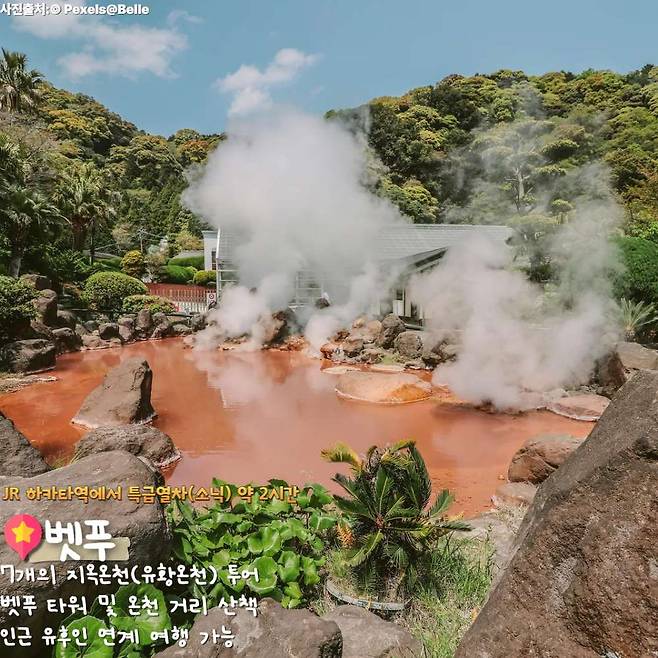 후쿠오카 근교 여행 벳푸는 우리나라 여행자들이 주로 온천욕을 즐기기 위해 방문하는 도시다. 특히 벳푸에 도착하자마자 곳곳에서 솟아나는 증기가 장관인데, 유황 냄새도 은은하게 나는 것이 특징이다.