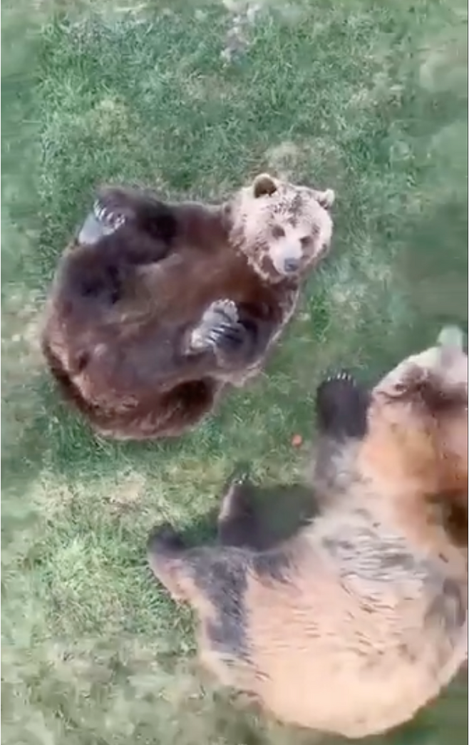 그러다 갑자기 한 곰이 손 같은 앞발로 뒷발을 잡더니, 앞뒤로 뒹굴뒹굴 움직입니다. 이 모습을 본 누리꾼들은 ‘요가를 하는 게 분명하다’, ‘저렇게 구르는 건 요가 자세다’, ‘필라테스 세션이다’ 등 곰의 행동을 추측했는데요. 뭐가 되었든, 혼자서도 이렇게 신나게 노는 모습이, 아이 같고 사랑스러운 곰입니다.