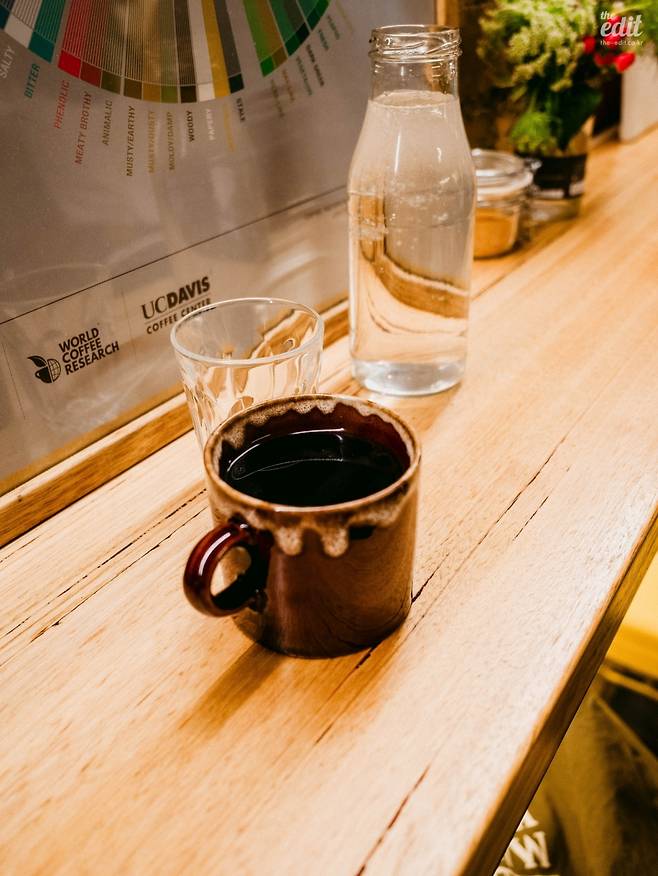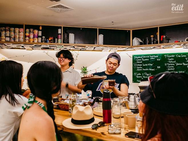 추천 커피는 푸어오버 커피(필터커피, 브루잉커피, 핸드드립 커피와 비슷한 표현). 바리스타의 추천으로 엘파리이소 리미티드 커피를 마셨다. 콜롬비아 엘파라이소 농장은 전 세계에서 가장 까다로운 발효 커피를 선보이는 곳이다. 향수를 포함한 듯한 폭발적인 향미가 특징이다.