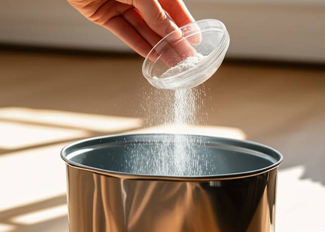 2. 베이킹소다 스프레이 활용: 베이킹소다와 물을 1:1 비율로 섞어 스프레이 용기에 담아줍니다. 쓰레기통 내부에 수시로 뿌려주면 냄새 제거 효과를 높일 수 있습니다.