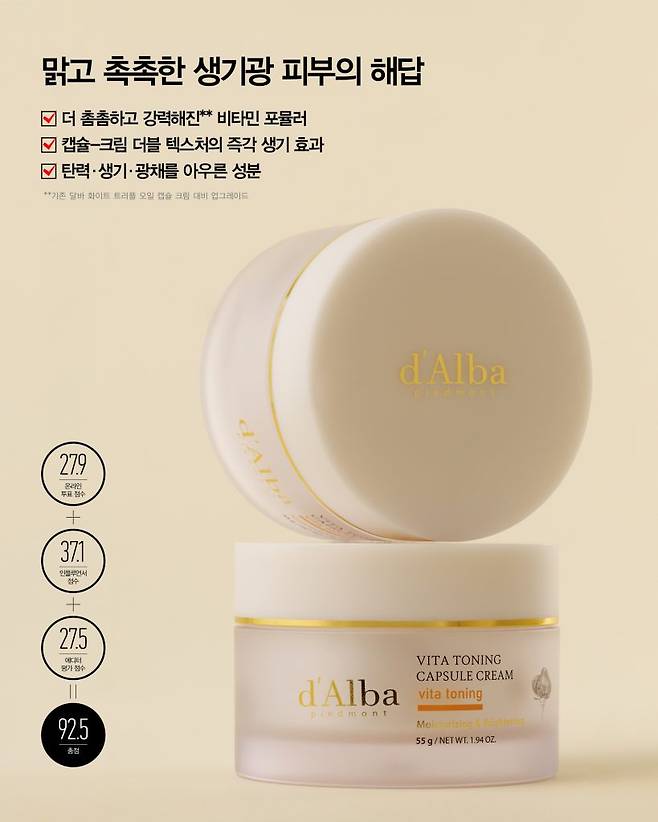 생기와 광채, 보습까지 한 번에, 달바 비타 토닝 캡슐 크림.