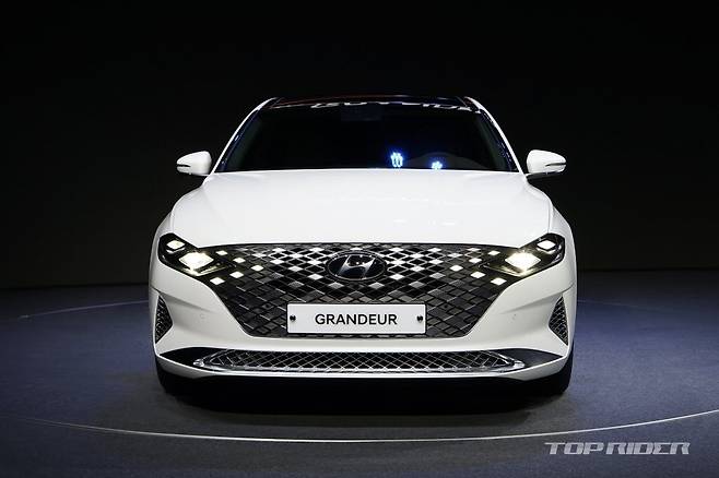 다만 신형 그랜저의 트렁크 용량은 480ℓ로 이전 세대보다 35ℓ 줄었다. 신형 그랜저 외관은 수평형 LED 램프 등 현대차의 새로운 조명 디자인과 역대 그랜저 디자인 요소가 반영됐다. 미래지향적이면서도 직선이 강조된 외관 스타일은 그랜저 IG 부분변경과 완전히 다르다.