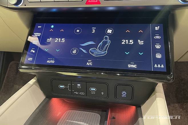 신형 그랜저는 동급 최초로 8도까지 등받이 각도가 눕혀지는 2열 전동식 리클라이닝 시트, 2열 도어 전동식 커튼을 제공한다. ccNC(connectes car Navigation Cockpit) 인포테인먼트 시스템, e 하이패스, 지문 인증, 디지털키 2, 빌트인 캠 2, OTA 등 신규 사양이 적용됐다.