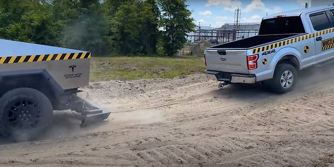 테슬라 사이버트럭이 포드 F150을 견인하던 중 프레임이 분리되는 일을 겪었다.
