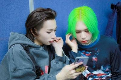 팬들에게 보여줄 셀카 찍는 멤버들! 원래는 태극 없는 태극 조합이었지만, 히 조합도 나쁘지 않은 것 같아! ୧〳 ʘ̆ ᗜ ʘ̆ 〵୨