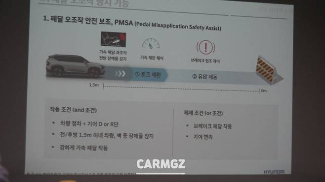 현대자동차 김동호 책임연구원은 페달 오조작 방지 보조(Pedal Misapplication Safety Assist), PMSA) 및 가속 제한 보조(Acceleration Limitation Assist , ALA) 기능을 소개했다.