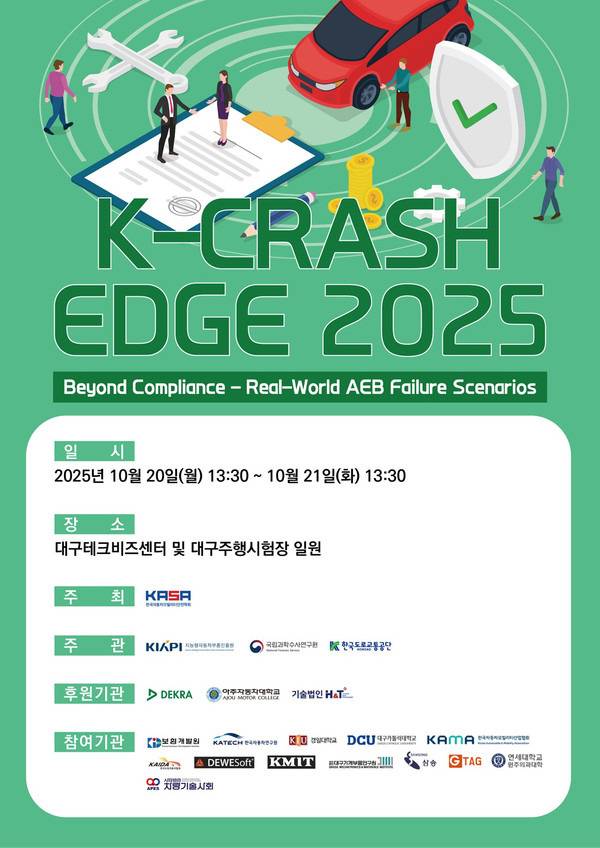 - 한국자동차모빌리티안전학회, K Crash Edge 2025 통해 ADAS 주행보조 기능 트렌드 분석 및 사고 사례 공유하는 자리 마련