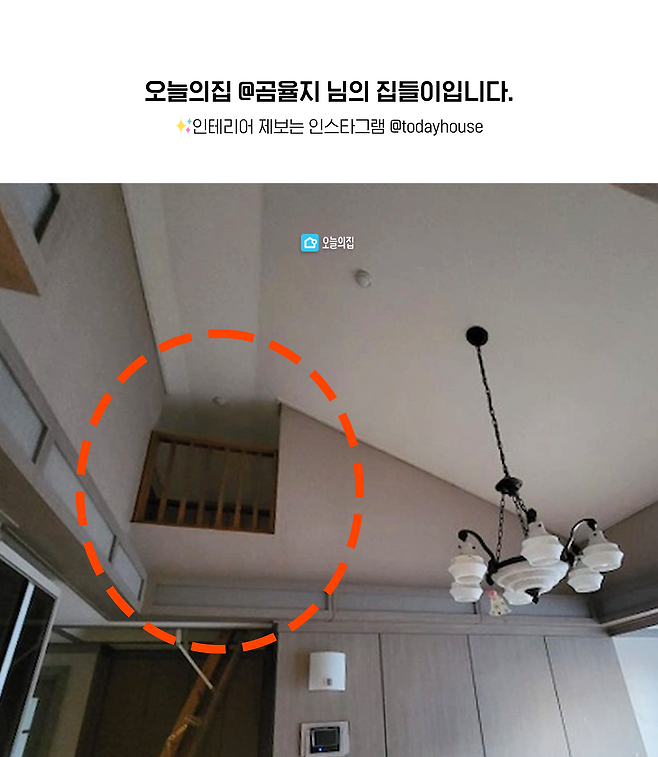 대대적인 공사가 있었던 거실입니다. 거실의 미션은 두가지였어요. 산장에 있을 것 같은 샹들리에, 거실벽을 두르고 있는 박스 조명, 아트월은 모두 제거해서 최대한 깔끔하고 넓게 보이기! 그리고 다락으로 향하는 계단 공사였죠.