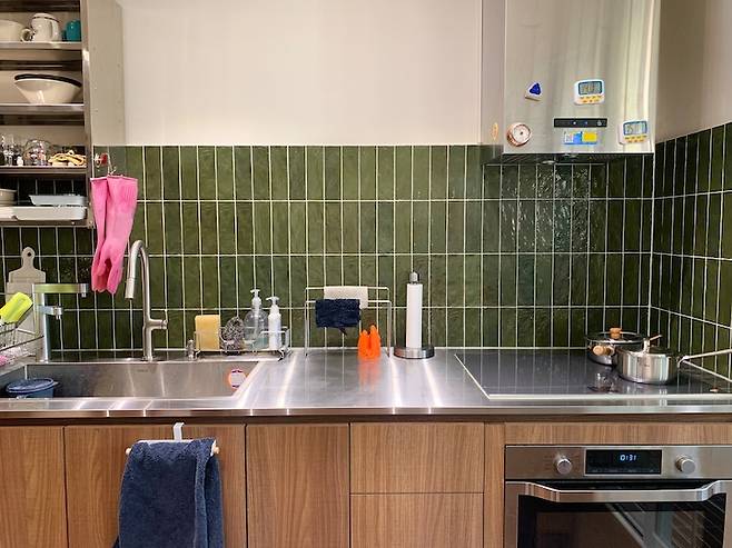 나무, 대리석 상판 모두 사용해봤지만 스테인리스 상판이 요리할 때 가장 편해요. 생각보다 관리도 쉽구요. 일 때문에 여러가지 조리기구를 써보니 스테인리스가 가장 위생적이고 내구성이 좋아 손이 많이 가더라구요. 주방의 주변 집기류나 정리대 모두 스테인리스 제품을 선호하는 편이에요.