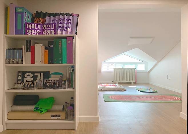 오른쪽 다락 입구에는 제가 좋아하는 방탄소년단의 굿즈를 보관해두었어요. 나이가 들고, 엄마가 되어도 제가 좋아하는 것을 잃지 말자는 생각으로 만든 공간이에요.