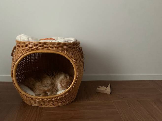 침대 맞은편엔 모찌가 자는 숨숨집이 있어요.