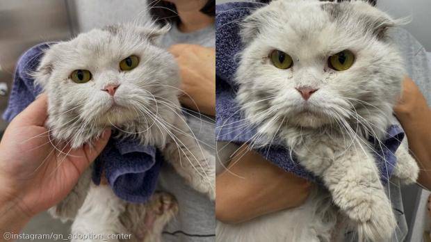 이 고양이는 지난 1일 강릉시의 아파트 단지에서 구조돼 현재 강릉시 동물사랑센터에서 보호 중이다.