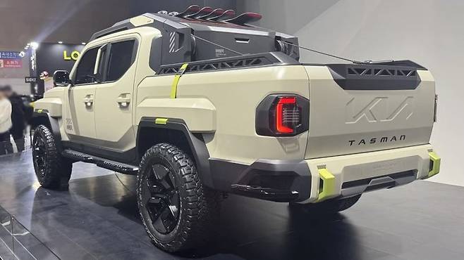 ‘타스만 위켄더(TASMAN WKNDER)’는 기본형 타스만의 형상과 성능을 바탕으로 강화된 오버랜딩 성능을 갖춘 아웃도어 특화 콘셉트 모델이다.