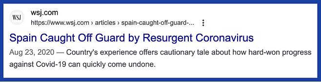 코로나19가 처음 유행하기 시작한 2020년에는 각국에서 봉쇄 조치가 이어지고 전세계 거의 모든 국가에서 마스크를 꼭 써야만 했잖아! 그 중 스페인은 일순 방심하자 감염자가 금세 늘어가는 상황을 마주해야만 했다는 내용을 담고 있는 기사야. 이제 caught off guard가 어떤 상황에서 쓰이는지 감이 좀 잡히지?
