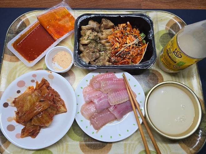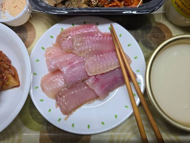 덕분에 흑산도 홍어에 막걸리 마십니다.