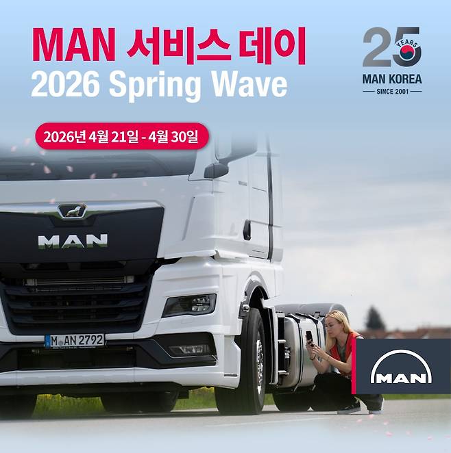만트럭버스코리아는 오는 21일부터 30일까지 전국 7개 거점에서 'MAN 서비스데이' 무상 점검 행사를 실시한다. 항만과 휴게소 등 주요 거점을 순회하는 방식으로, 전용 진단기를 활용한 20개 항목 점검과 기술 상담이 제공된다. 현장 방문 고객에게는 서비스 바우처와 기념품 등 다양한 혜택도 제공된다.