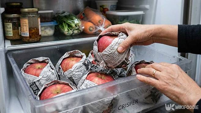 씻지 않은 사과를 하나씩 신문지로 싸서 보관하면 수분 증발을 막아 더 오래 신선하게 유지할 수 있다. 미리 씻어서 보관하면 수분이 빠져나가는 속도가 빨라지기 때문에 먹기 직전에 씻는 것이 좋다.