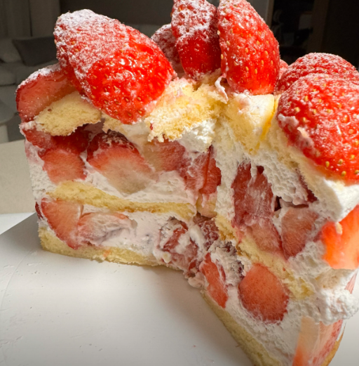 ▶ 케이크 구성의 80%가 딸기라 할 정도로 양이 압도적이며, 동물성 생크림을 사용해 느끼함 없이 부드럽고 산뜻한 맛을 보여줍니다.