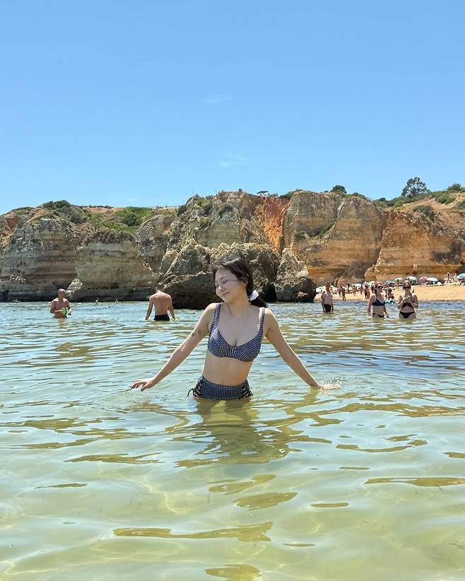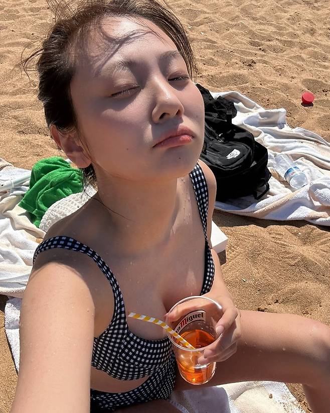 체크 패턴의 비키니와 함께, 일상에서는 볼 수 없던 반전미와 여름의 자유로움이 사진 속에 고스란히 담겼다.