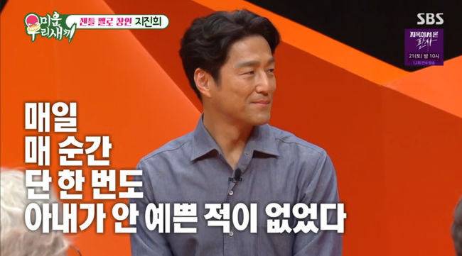 지진희는 예능에 출연할 때마다 아내에 대한 애정을 감추지 않는데요. 결혼한 이후 지난 20년간 단 하루도, 단 한순간도 그녀가 예뻐 보이지 않은 적이 없다고 전했습니다.