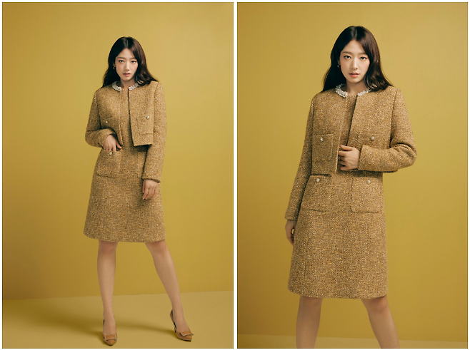 화려한 무드가 느껴지는 자켓&스커트 셋업은