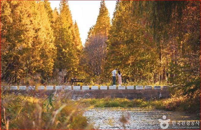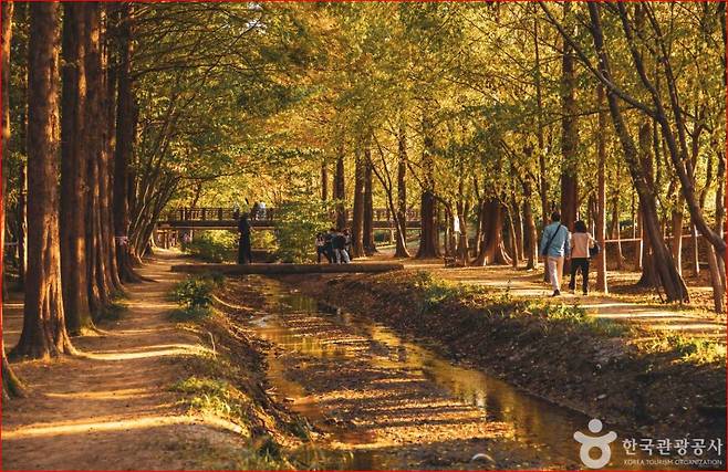 가을 : 메타세쿼이아길 단풍과 은행잎이 황금빛으로 물들어 가장 화려한 계절을 선사합니다.